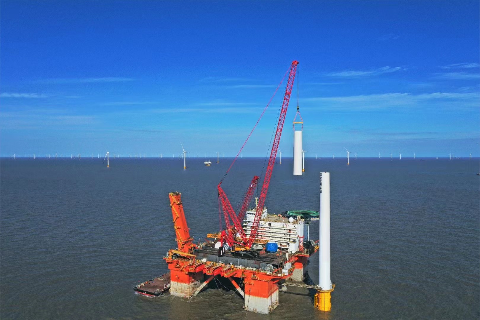 江蘇鑫鵬電力是一家專業承攬電力工程建設;海上、陸地風電安裝;光伏發電;火電安裝、檢修;橋梁市政工程;大型場館起重安裝;石油、化工、冶金等大型大件設備吊裝、運輸;設備租賃、進出口貨物、船舶及道路運輸、混塔預制及安裝等綜合性公司。公司擁有500噸~2000噸大型履帶式起重機,總噸位40000余噸,海上風電安裝大型起重作業船一艘。